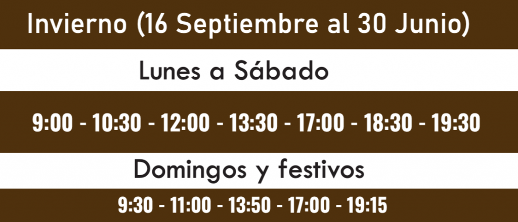 Vigencia del horario de invierno desde el 16 septiembre hasta el 30 junio